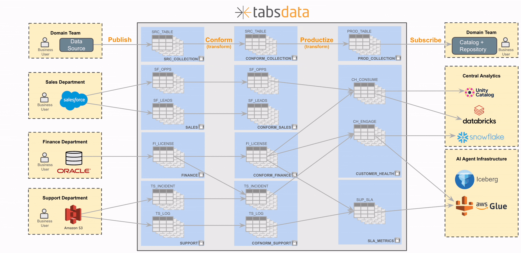 Tabsdata is a modern ETL platform built on a publish/subscribe model for tables, enabling data teams to move beyond pipelines. It simplifies ingestion, transformation, and delivery across cloud and on-premises systems while automatically managing lineage, provenance, and governance for trusted, AI-ready data.
