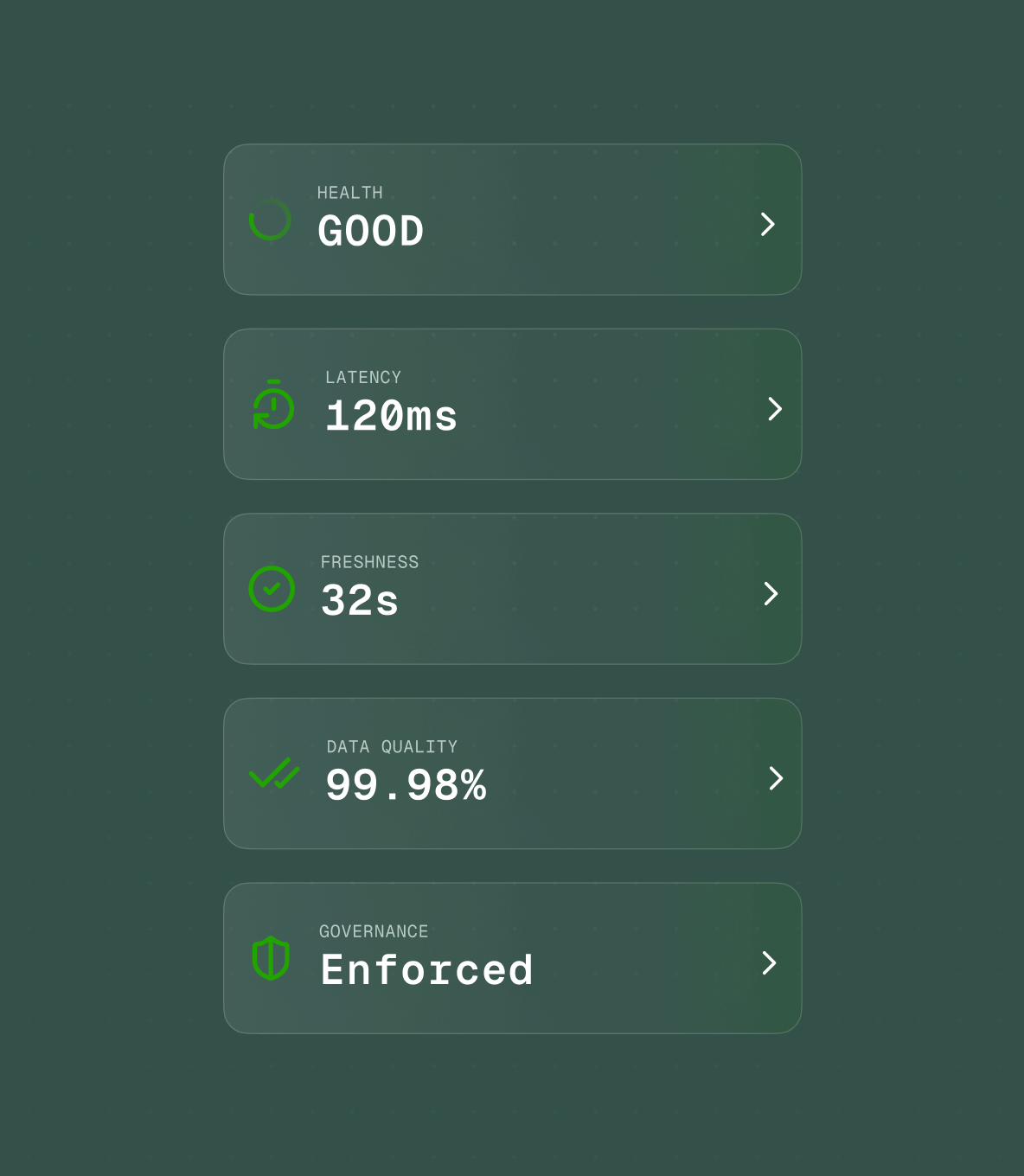 Tabsdata provides built-in dashboards showing freshness, latency, errors, and quality checks across each flow. Teams will be able to spot issues quickly, trace them to source, and understand which datasets drive the most impact. With a unified view of flow health and usage, data leaders maintain trust, reduce resolution time, and keep real-time pipelines optimized.