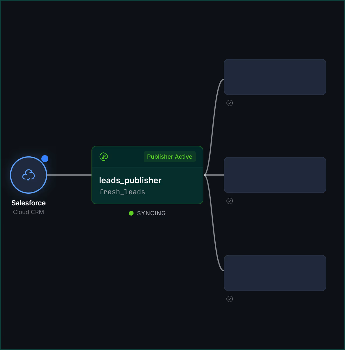 Instead of relying on scheduled sync jobs, updates propagate automatically as soon as new table versions are published, based on declared table-level dependencies. This eliminates pipeline failures and prevents stale CRM insights across downstream systems such as data warehouses, analytics platforms, and internal applications.